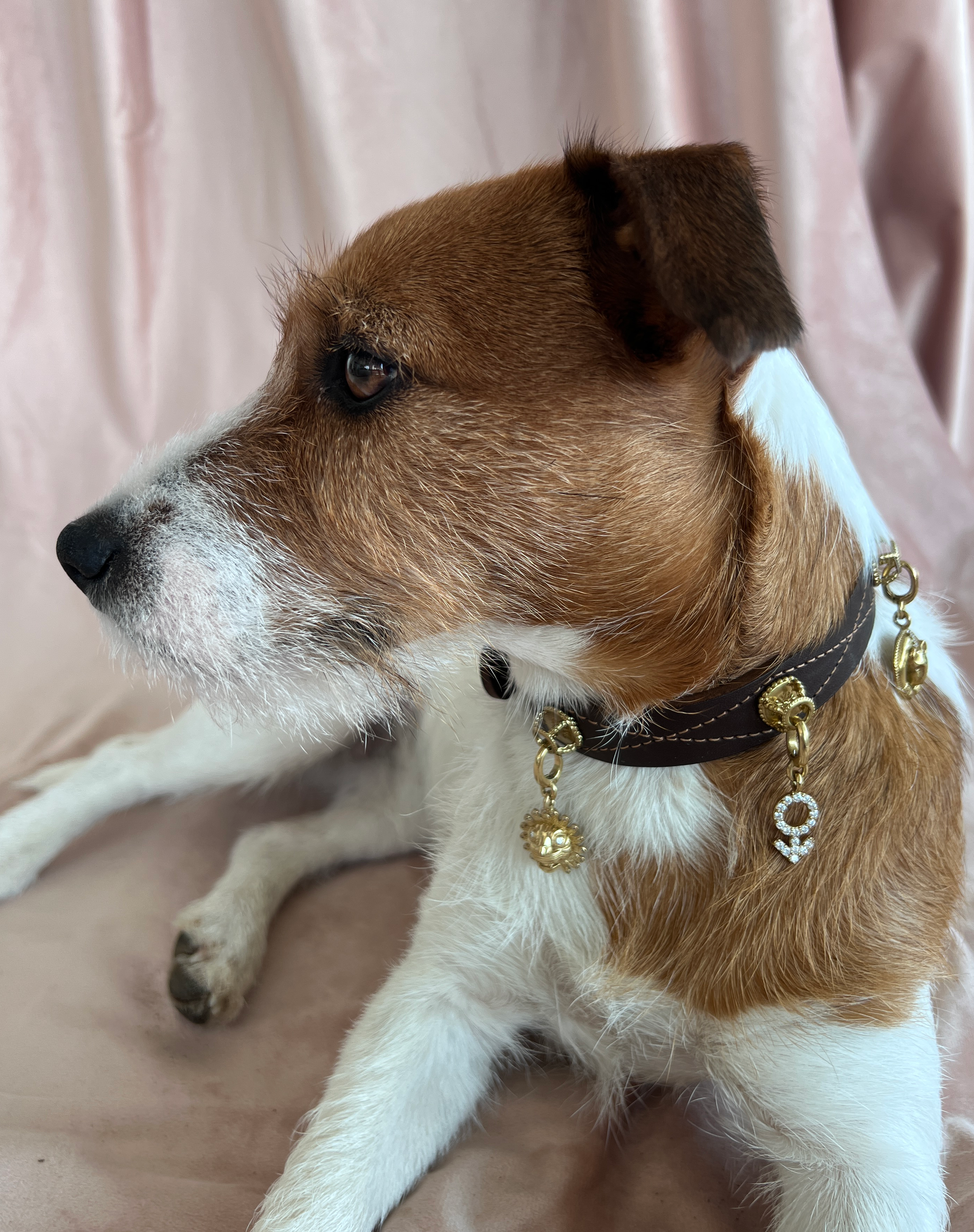 This charm can be worn on any collar from our dog collection. Our charms are made with our playful friends in mind: they’re noiseless and don’t bother any dog more than a dog tag, and allow for worry-free play due to our clip design; they will not get caught on branches.