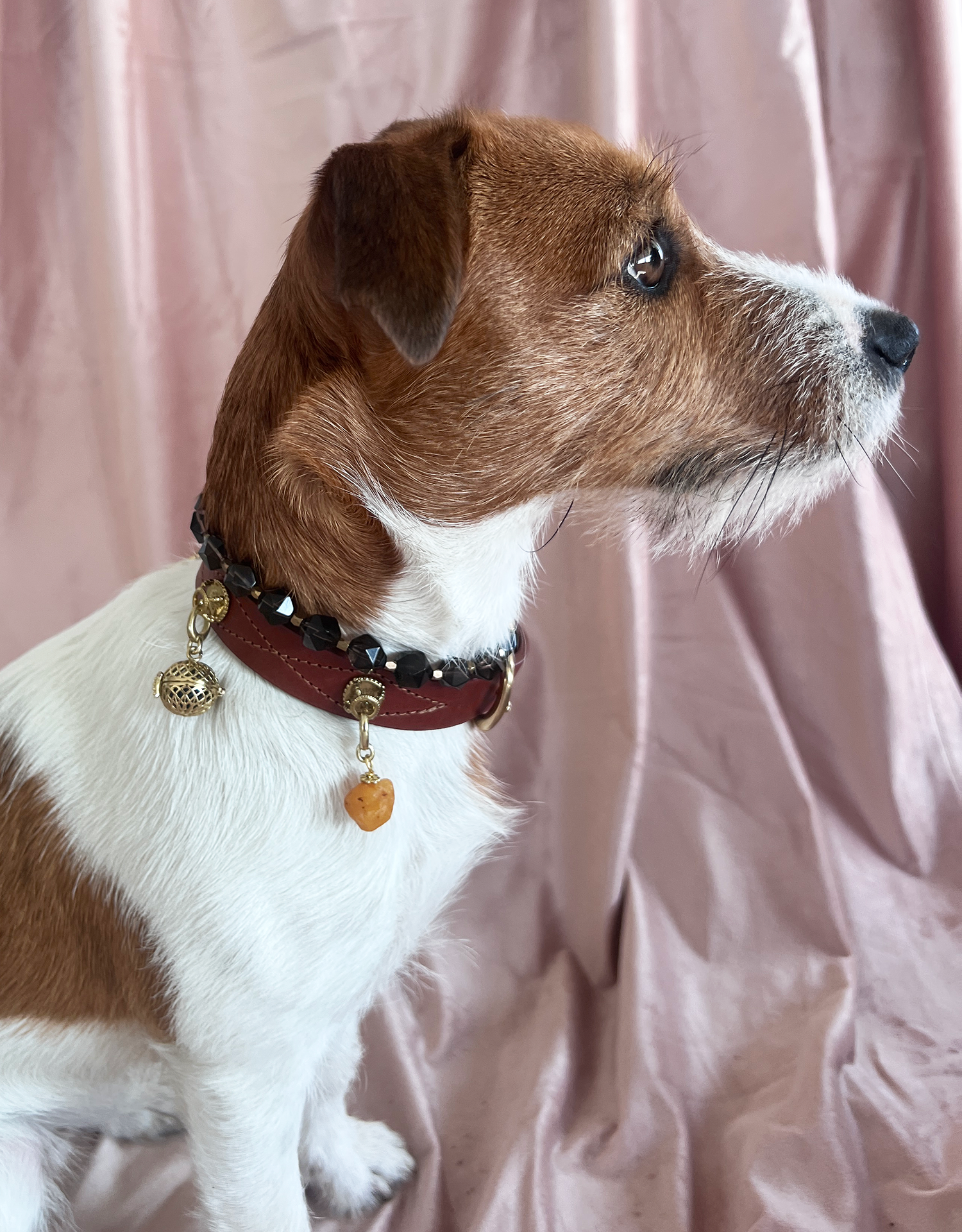 This charm can be worn on any collar from our dog collection. Our charms are made with our playful friends in mind: they’re noiseless and don’t bother any dog more than a dog tag, and allow for worry-free play due to our clip design; they will not get caught on branches.