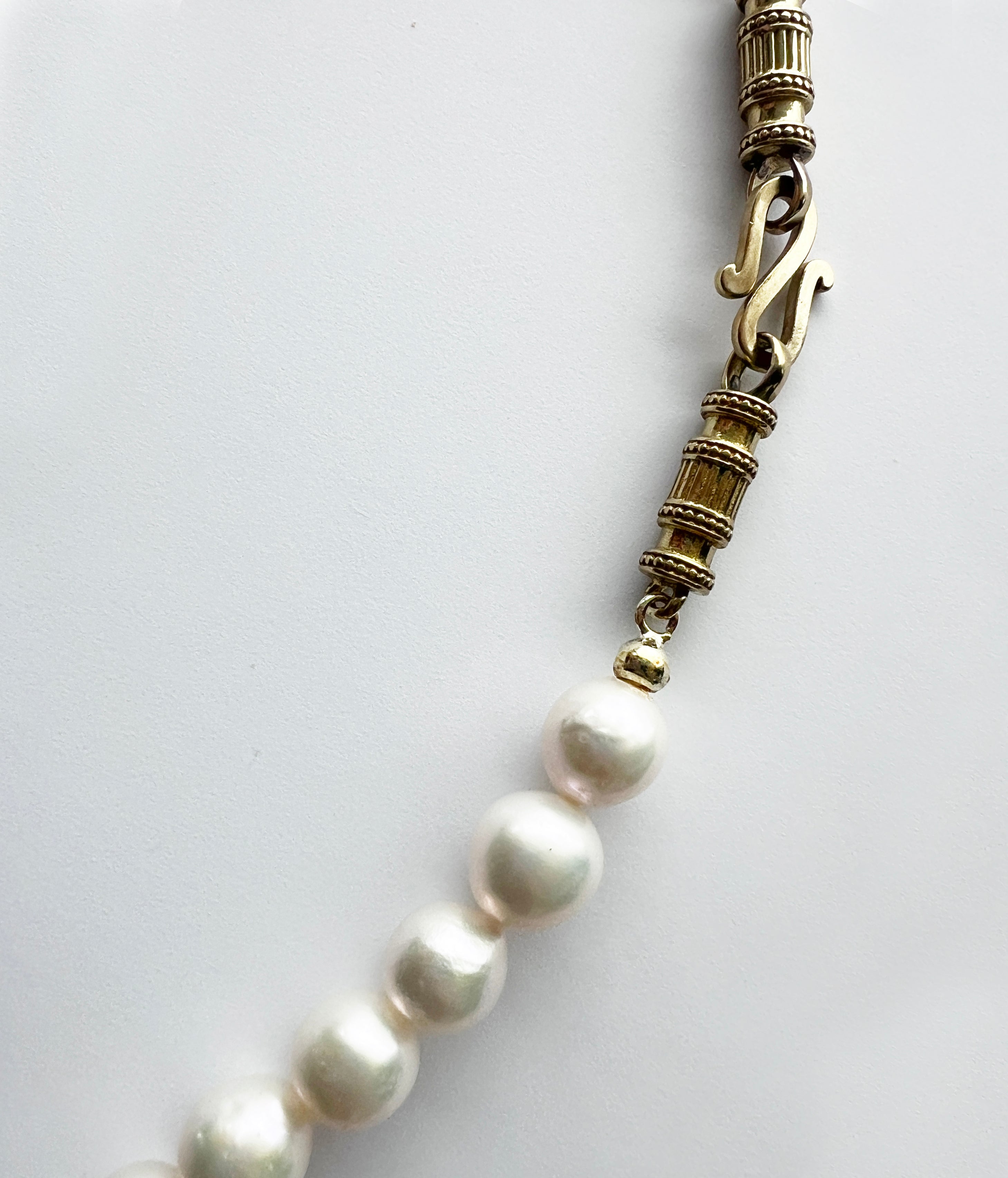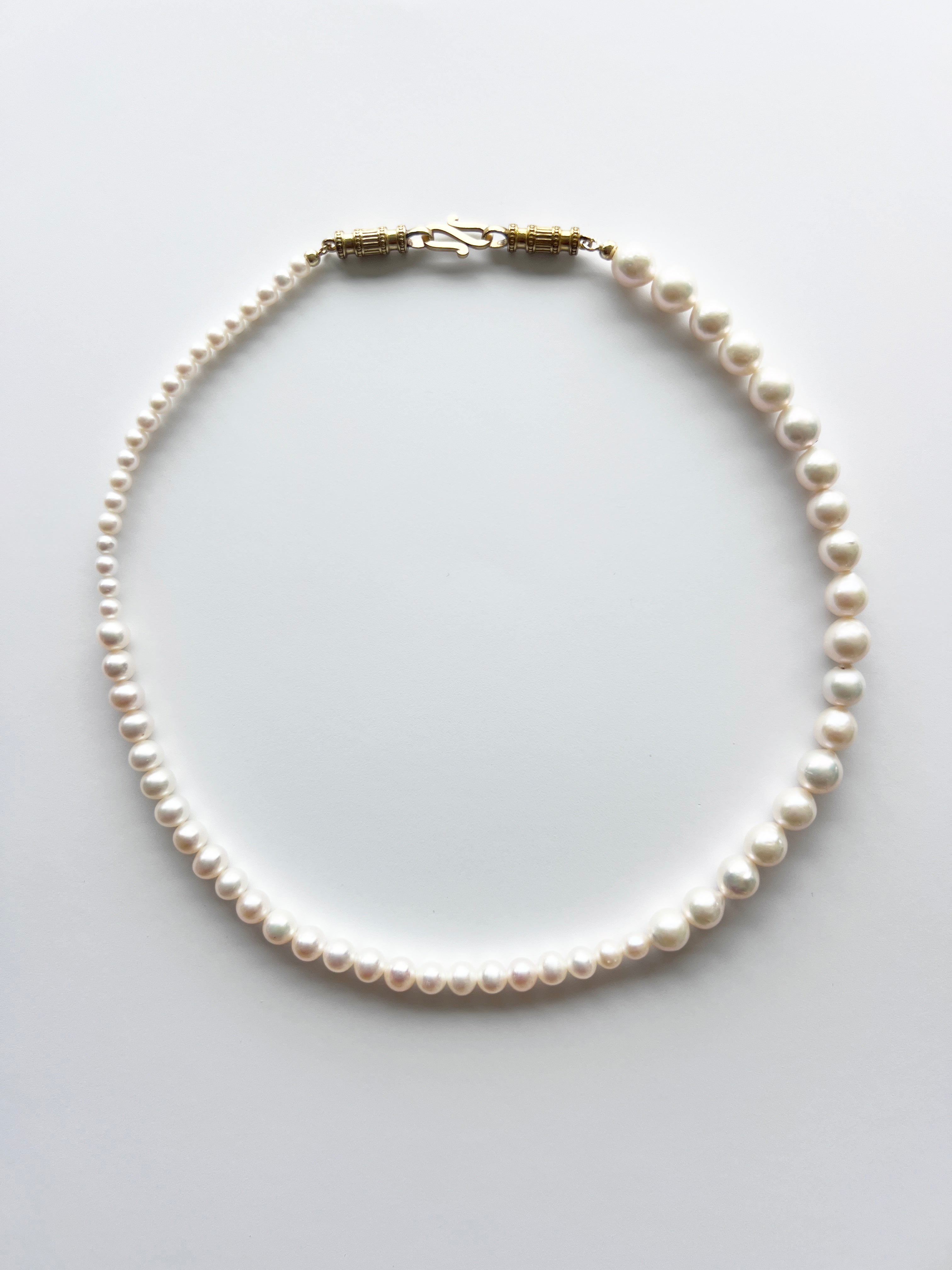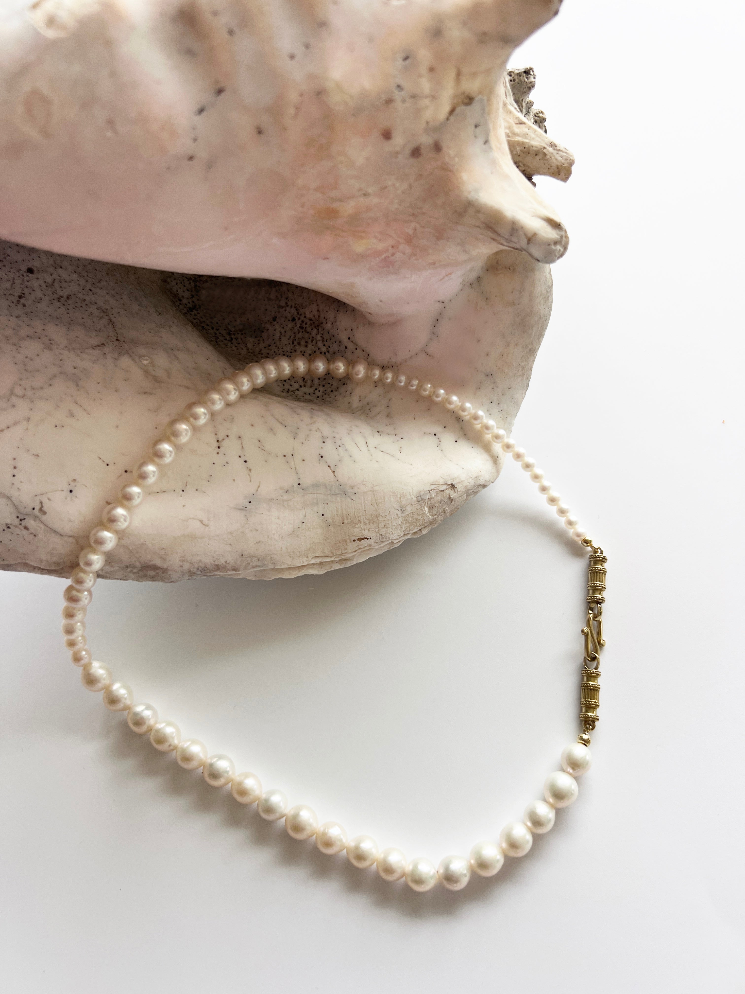 Three luminous Freshwater Pearls are placed in a natural progression – from small to larger – symbolizing the quiet beauty of unfolding into who you are meant to be.