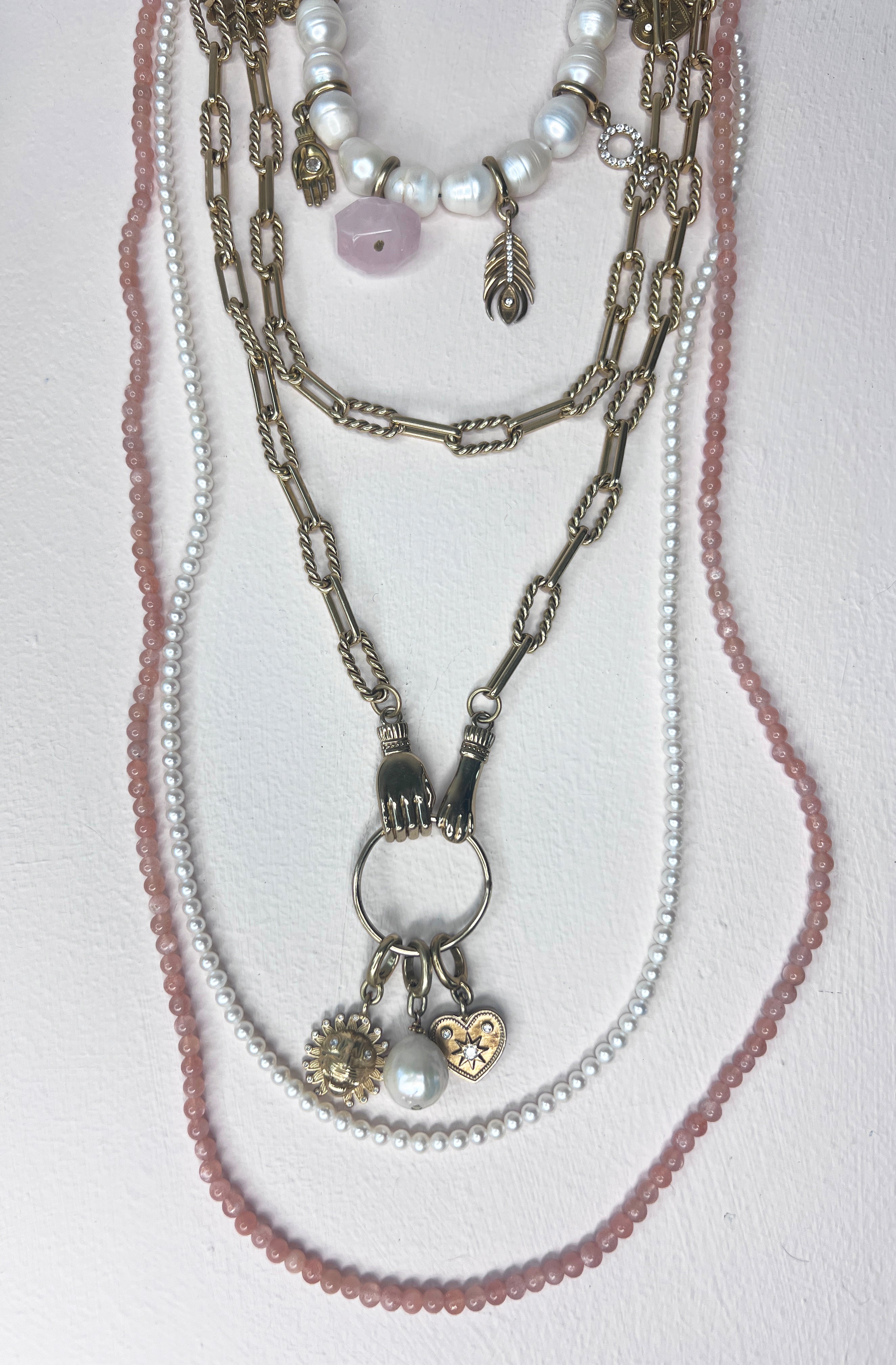 Our chains are created from genuine and beautiful crystal beads, freshwater pearls, and polished brass beads, all featuring the unique Unleash Cph clasp.